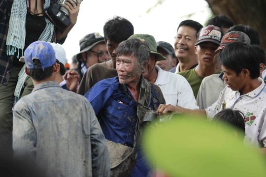 | Tuy nhiên cũng không ít tai nạn đáng tiếc xảy ra, trong ảnh là một ông mải mê chụp ảnh không tránh kịp bò nên người dính đầy sình lầy. |