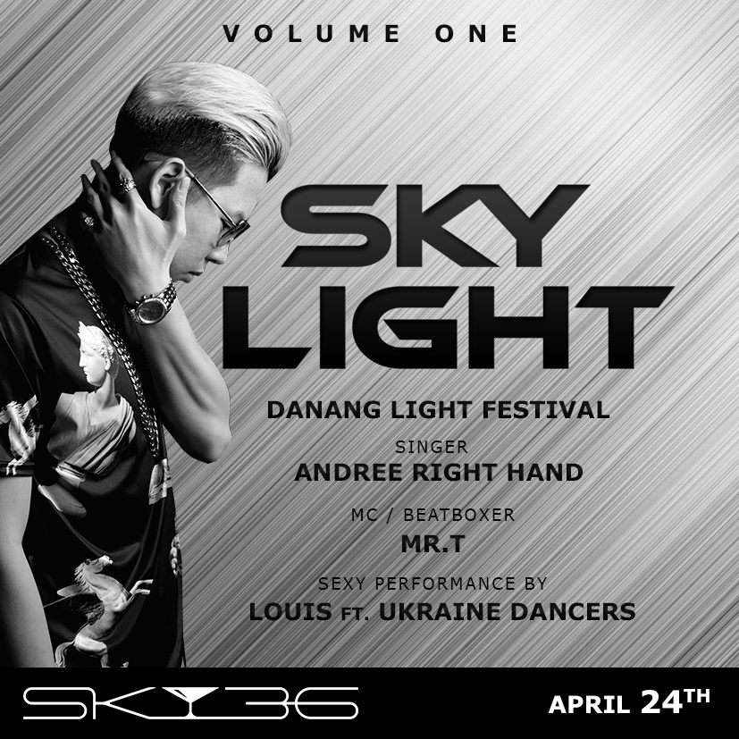 Đến nơi cao nhất thành phố Đà Nẵng, bạn sẽ cháy hết mình cùng chuỗi sự kiện của chương trình lễ hội Sky light festival. Từ ngày 24/4 đến 26/4, có mặt tại SKY36 là nghệ sĩ beatbox Mr T, ca sĩ kiêm rapper Andree Right Hand cùng với rapper Lil’ Knight.