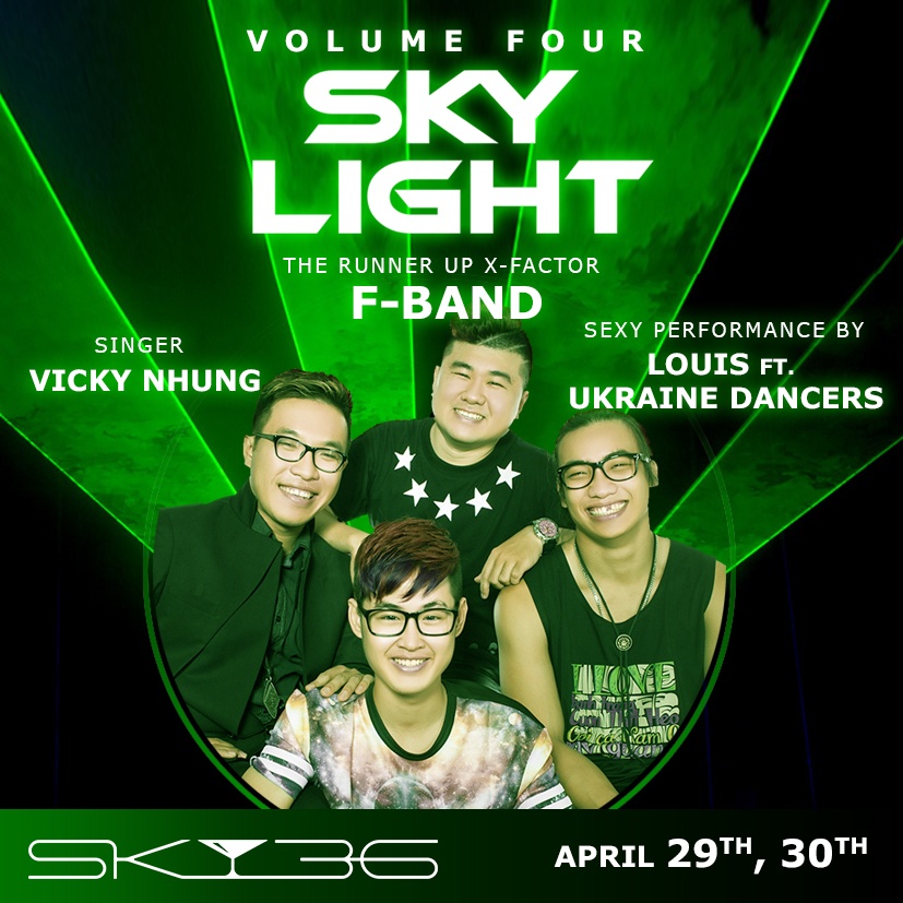 Còn trong đêm 28, 29 và 30/4, xuất hiện trên sân khấu là Vicky Nhung, nữ ca sĩ nổi tiếng với những bản cover đậm chất rock- alternative trên Youtube; ban nhạc F-Band và các ca khúc mash-up độc đáo từng "gây bão" trên chương trình Nhân tố bí ẩn X-Factor; cùng với đó là Trang Moon, cô nàng DJ xinh đẹp, gới cảm. Đặc biệt, tham gia chương trình còn có Á hậu Huyền My, đại diện thương hiệu SKY36.