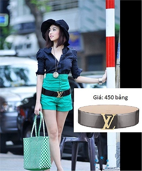 | Thắt lưng của người đẹp Đinh Ngọc Diệp cũng với nhãn hiệu LV có giá lên đến khoảng 13 triệu đồng. |