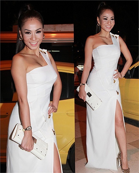 | Từ ngày có chồng Tây, Thu Minh "lên đời" phong cách với những món hàng hiệu đắt tiền và bộ trang phục cùng phụ kiện trên tông màu trắng của cô có giá tới 1,4 tỷ đồng. |