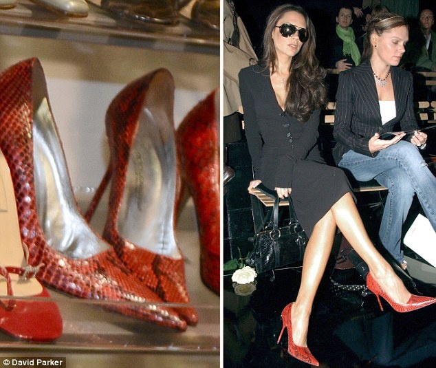 Đôi giày cao gót da rắn đỏ hiệu Dolce & Gabbana Vic từng đeo khi đi xem thời trang ở Milan năm 2003.