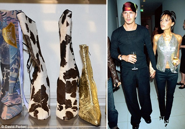 | Đôi bốt da bò độc đáo này đã cùng Vic sánh bước bên David tại một sự kiện ở London năm 1999. |