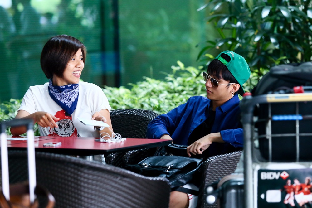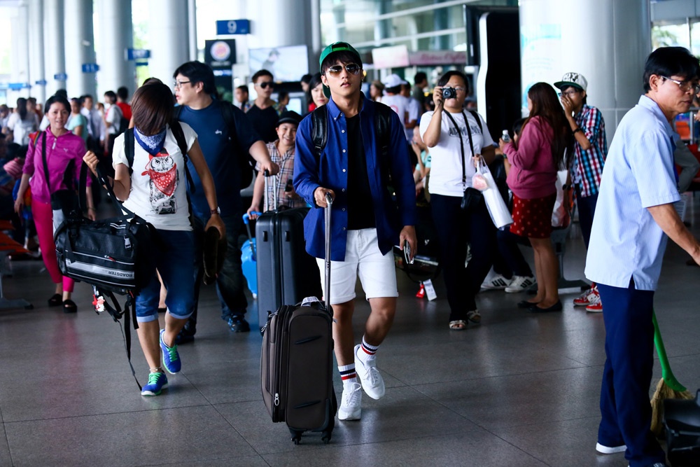 | Sau một tuần quay phim tại Singapore, Sơn Tùng trong đen hơn trước. Tại sân bay, anh cởi mở và thân thiện khi fan xin chụp hình lưu niệm. Rất nhiều khán giả nhận ra tác giả của hàng loạt hit nhưEm của ngày hôm qua, Cơn mưa ngang qua hay Nắng ấm xa dần. Xuất hiện nơi công cộng, Sơn Tùng rất hiếm khi cười nói vui vẻ như các đồng nghiệp mà khá lạnh lùng. |