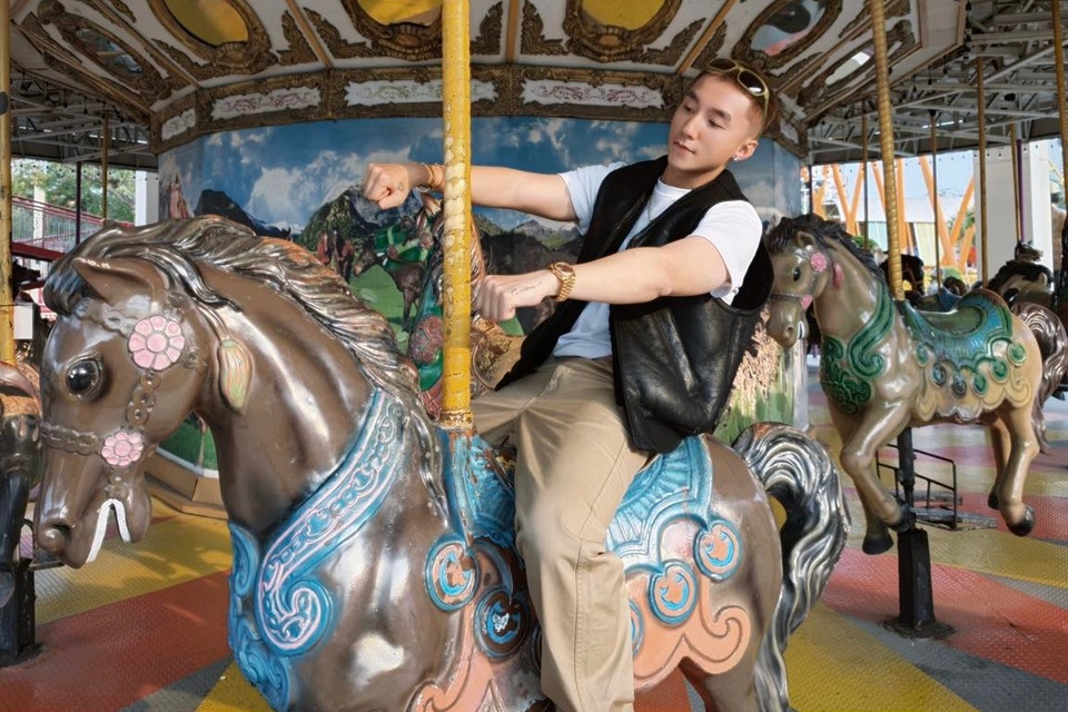 Sơn Tùng M-TP trải nghiệm vòng quay ngựa 2 tầng tại công viên Siam Amazing, Bangkok, Thái Lan. |
