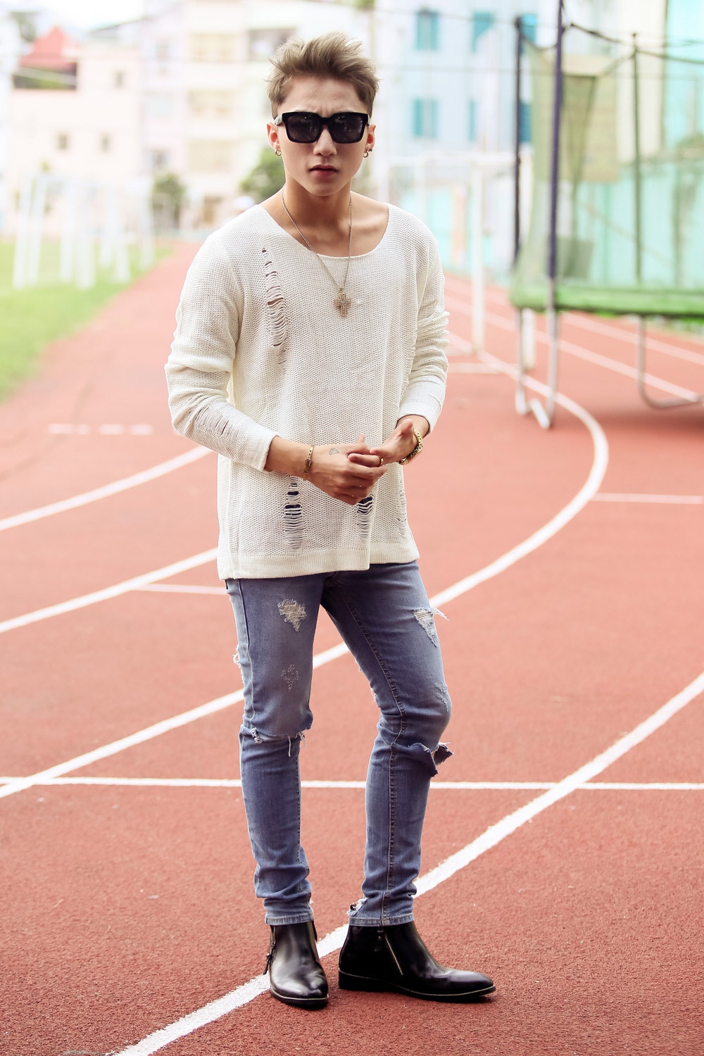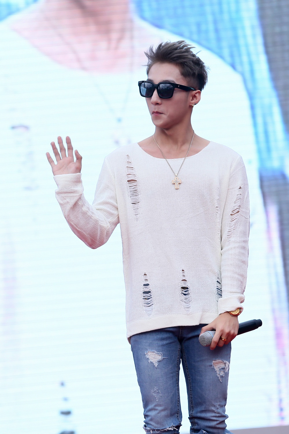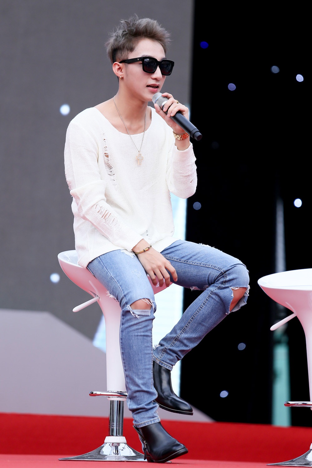 | Nam ca sĩ ăn mặc cá tính với áo thun và quần jeans rách, thần sắc khá tươi tắn dù gặp hàng loạt những rắc rối thời gian qua. Mới đây, đêm diễn tại Bình Dương có anh tham gia bị thanh tra Sở Văn hóa Thể thao và Du lịch Bình Dương lập văn bản. |