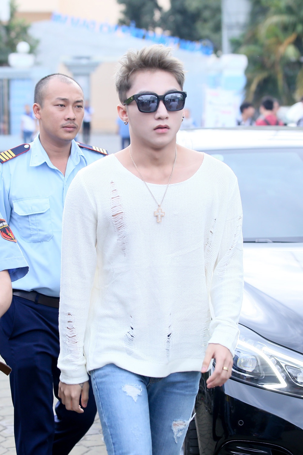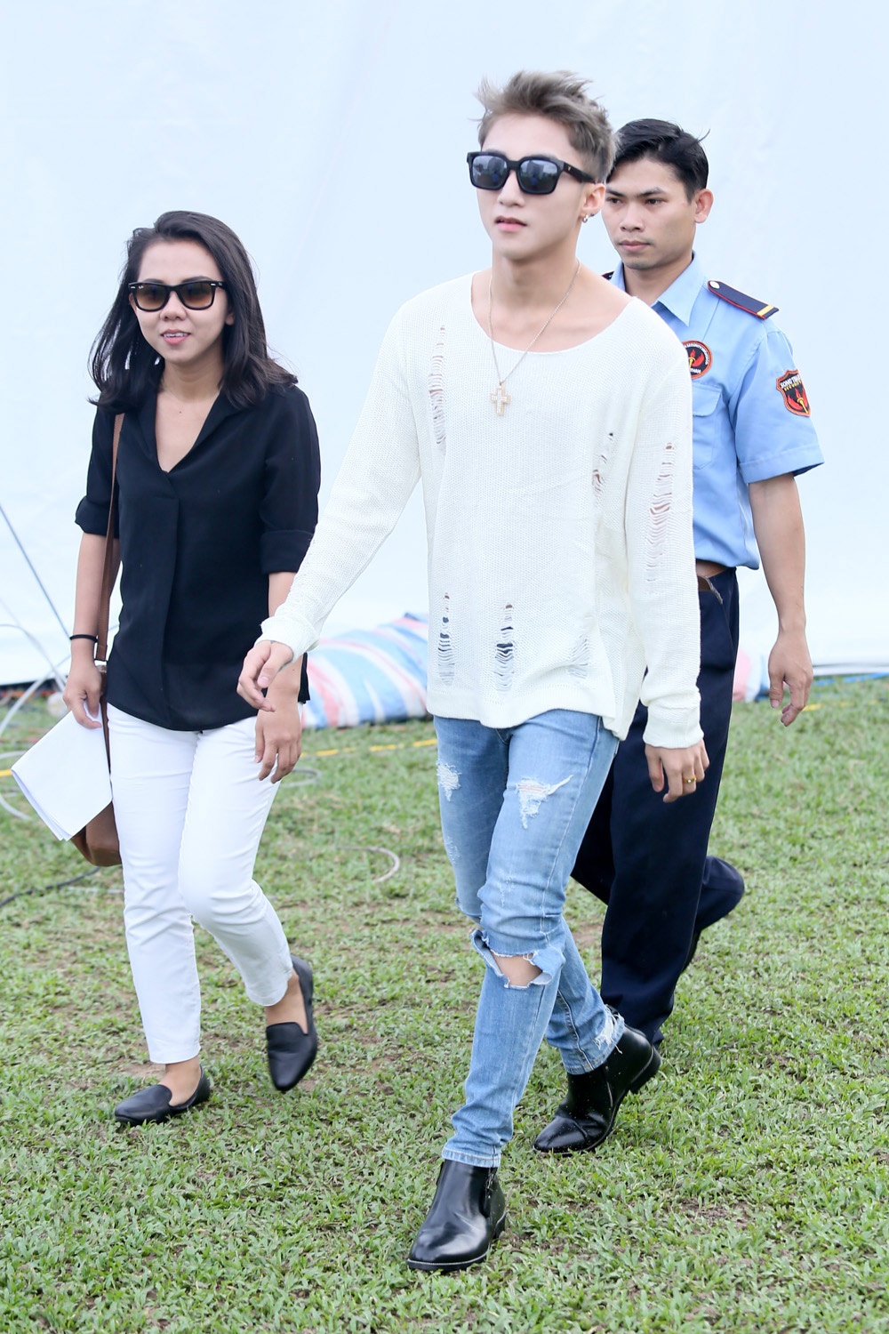 | Sơn Tùng đi cùng người quản lý và được công ty tổ chức đón tiếp ngay từ lúc xuống xe. Họ cũng thuê hai vệ sĩ đi theo sau bảo vệ nam ca sĩ tránh sự cuồng nhiệt của khán giả trẻ xung quanh. Đây cũng là lần đầu tiên Sơn Tùng lộ diện công khai trước truyền thông sau hàng loạt scandal thời gian qua. |