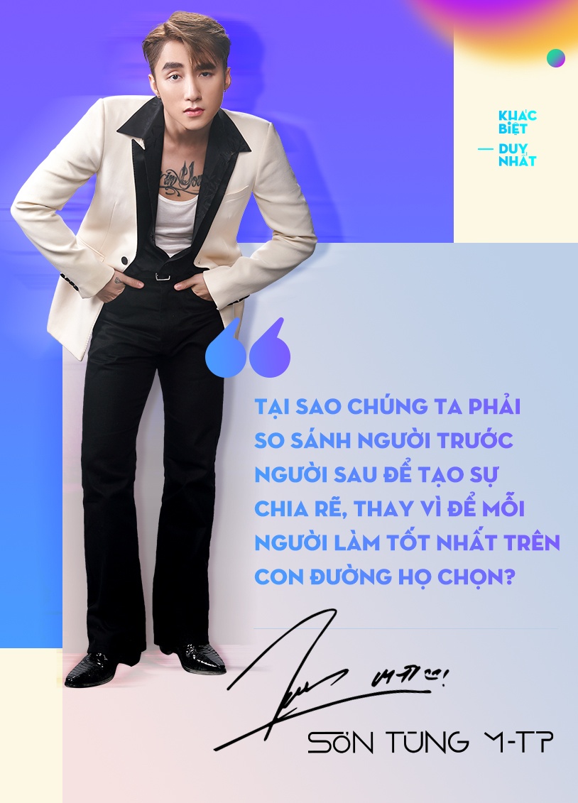 Không xem mình là giỏi nhất, nhưng Sơn Tùng M-TP cũng nhận thức rất rõ bản thân là phiên bản duy nhất, khác biệt với mọi người. Và hành trình của những cái tôi khác biệt thường không dễ dàng nhận được sự cảm thông, thấu hiểu từ xung quanh.
