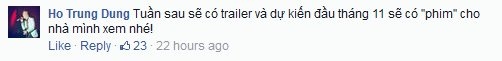 | Thậm chí chàng ca sĩ lịch lãm của làng nhạc Việt còn tiết lộ về thời gian của sự kiện. Theo đó, trailer sẽ bắt đầu được tung ra vào tuần sau và phim chính sẽ có vào đầu tháng 11. |