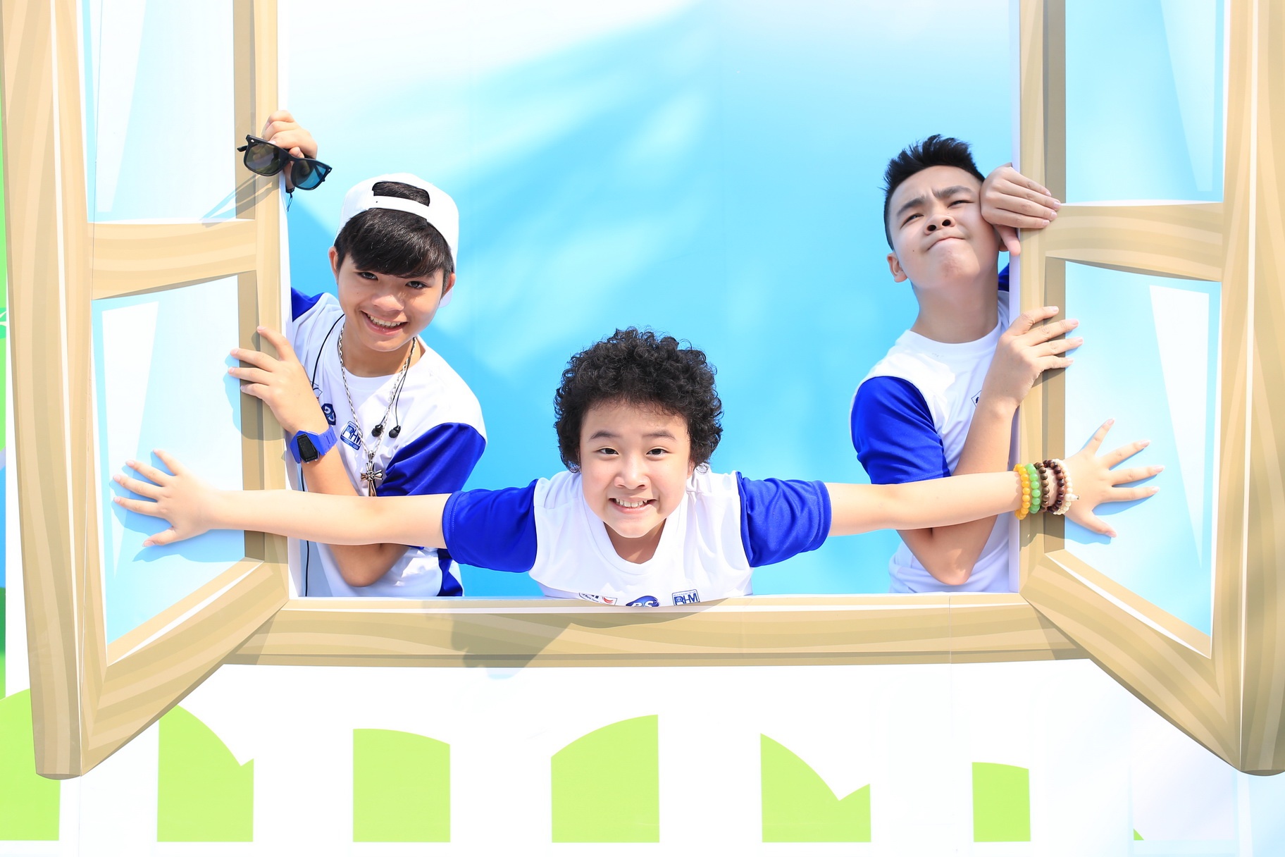 | Bộ ba nhí nhảnh chụp ảnh trước ống kính. |
