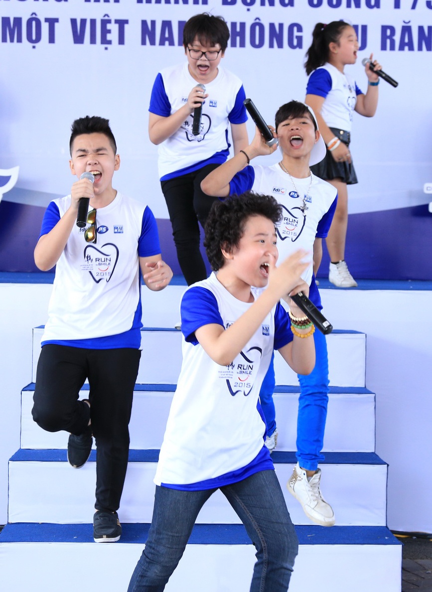 Bộ đôi cùng với dàn ca sĩ nhí bước ra từ The Voice Kids như Quang Anh, Hoàng Anh, Đức Anh khuấy động hơn 6.000 khán giả tham gia chạy bộ vào sáng 21/3, tại TP HCM.