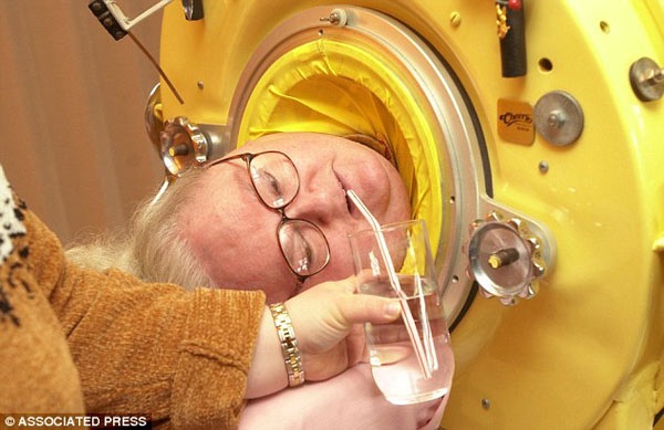 Martha Mason ở Lattimore, North Carolina, phải nằm bất động trong một ống được đặt tên là phổi sắt có chức năng như là một loại máy thở vì cơ quan này của cô hoạt động quá yếu. Cô nằm trong ống sắt đã 61 năm.
