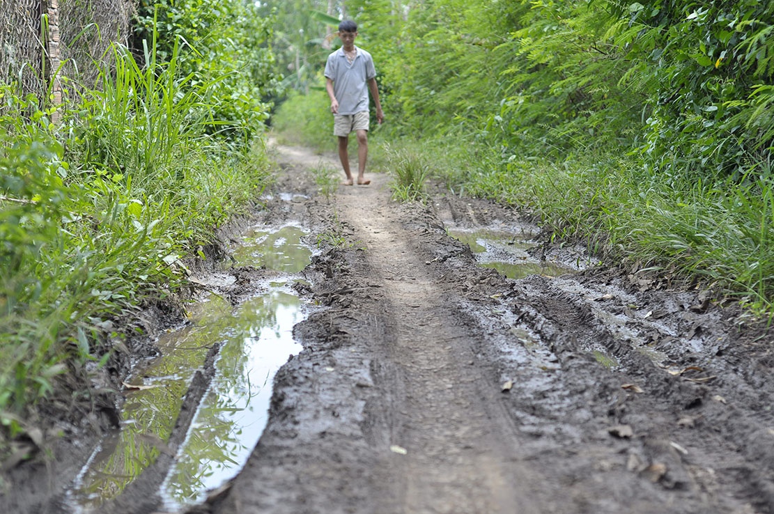 | Người dân trong vùng quy hoạch dự án sân bay Long Thành phải đi lại trên những con đường lầy lội. Ảnh: Ngọc An |