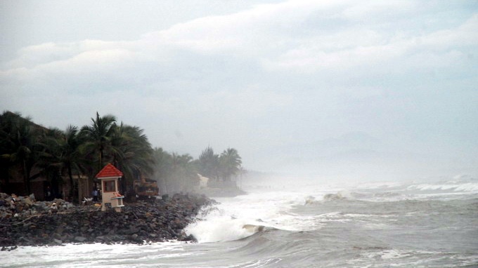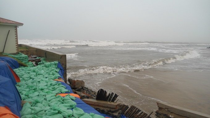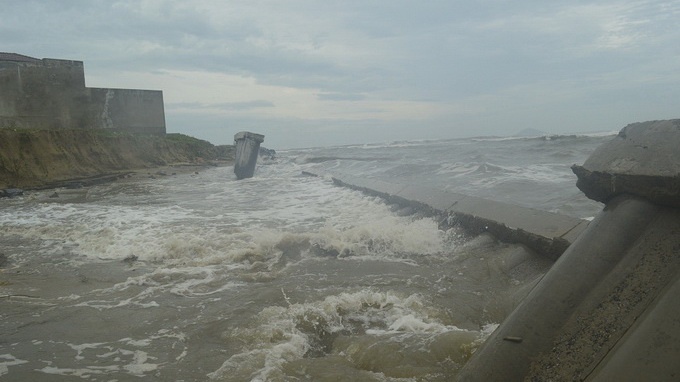 | Nước biển không ngừng dâng cao, công phá vào bờ kè. |