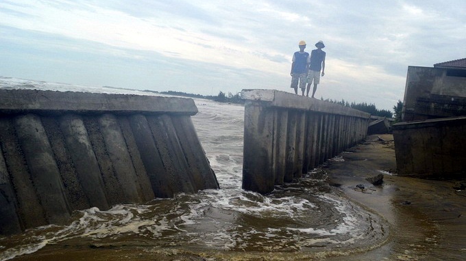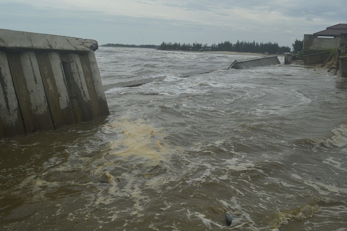 | Bờ kè đổ sập vì gió to, sóng lớn. |