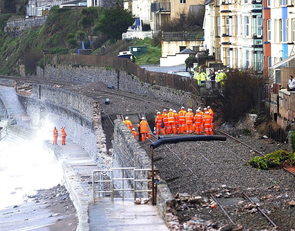 Gió mạnh, sóng lớn làm đường ray, cơ sở vật chất nhiều khu vực ven biển nước Anh hư hỏng nặng trong những ngày qua.