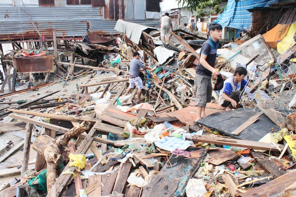 | Khuya 22, rạng sáng 23/12, nhiều căn nhà tại khu vực sát cửa biển sông Cái (tổ 7, phường Vĩnh Phước, TP.Nha Trang, tỉnh Khánh Hòa) bị sóng lớn đánh sập, trong đó 6 căn sập hoàn toàn. Hàng trăm người dân hoảng loạn tháo chạy trong đêm. |
