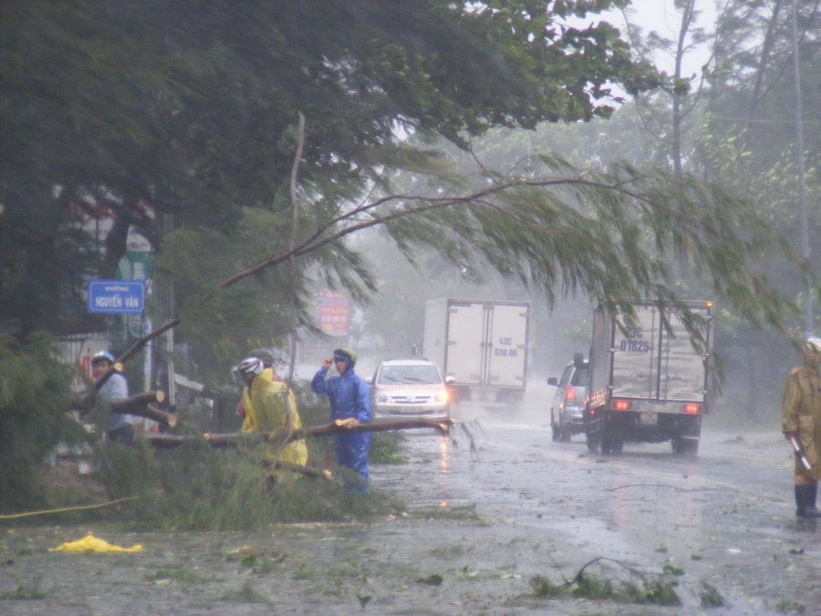 Bờ biển tại Quảng Bình, Huế, Đà Nẵng đang bị sóng táp dữ dội. Trong các thành phố, đã có cây đổ dù theo dự báo, còn vài giờ nữa bão mới cập bờ.