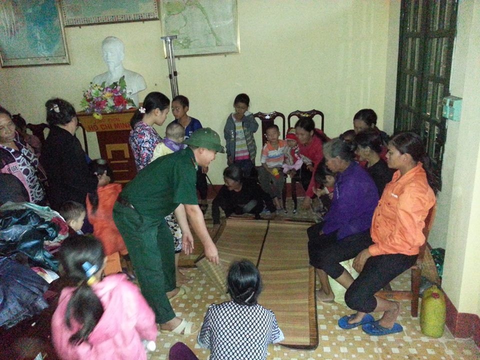 | Điểm sơ tán của người dân các xã ven biển ở Quảng Bình đã chật chỗ. |