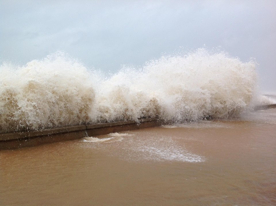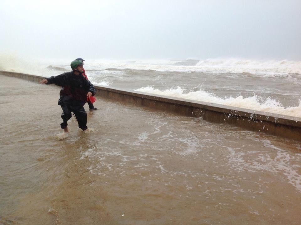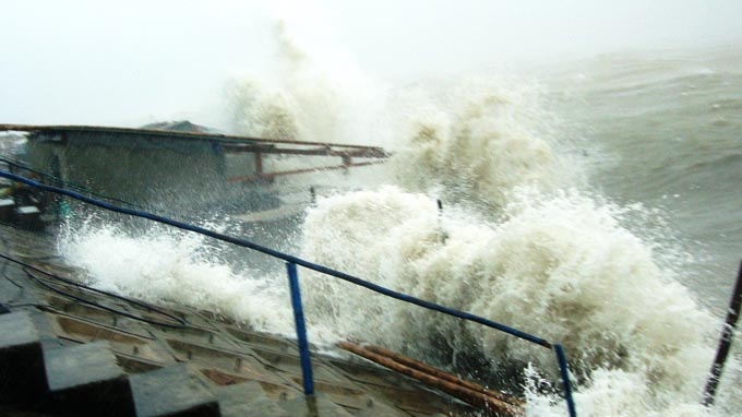 Nước biển cùng sóng lớn đã tràn bờ ở nhiều nơi.