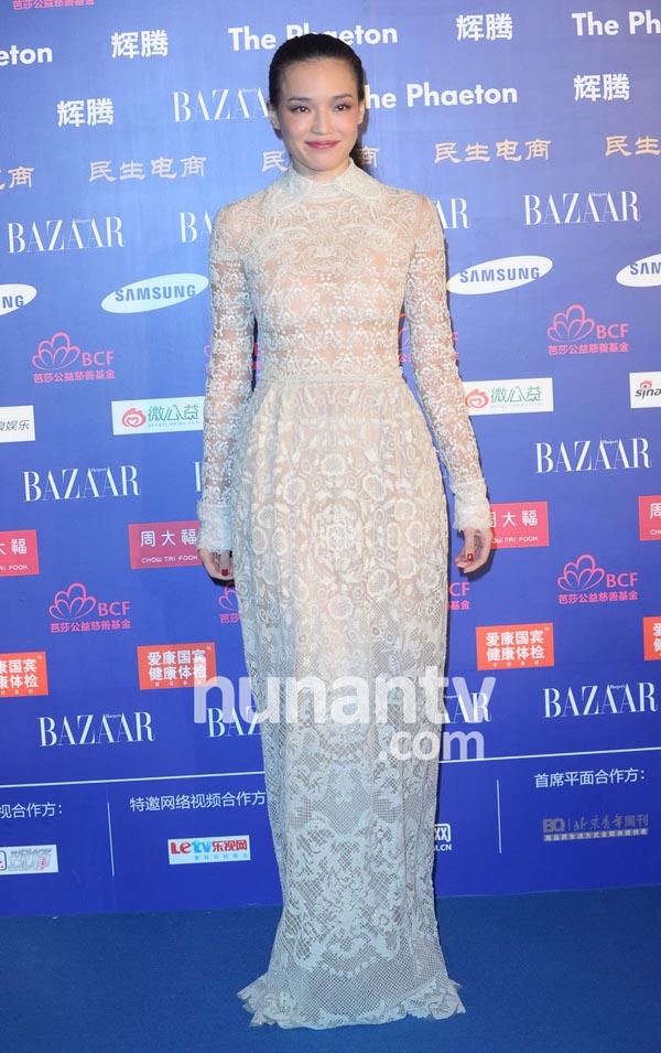 | Lý Băng Băng gợi cảm với váy ren trắng. |