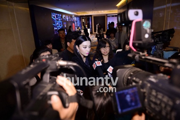 | Phạm Băng Băng bị vây kín từ khi xuất hiện. |