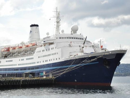| Tàu du lịch Marco Polo bị sóng đánh trúng khiến một du khách thiệt mạng. Ảnh: Independent. |