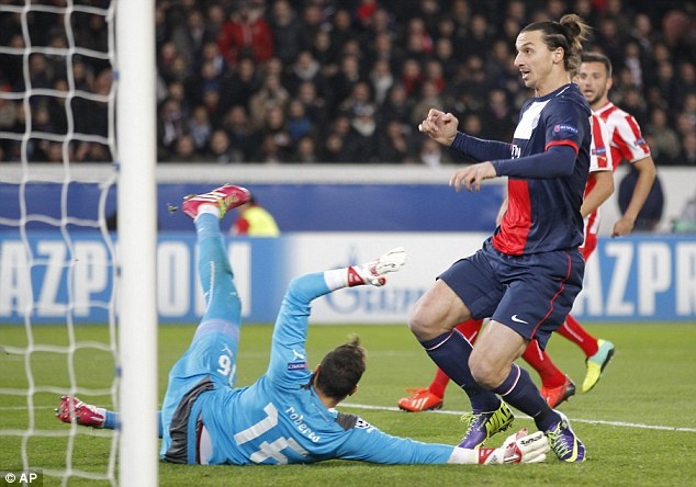 PSG không phải chờ đợi lâu để có bàn thắng. Ibrahimovic trong lần thứ 100 thi đấu tại Champions League đã ghi bàn đầu tiên của trận đấu ở phút thứ 7. Tiền đạo này dễ dàng dứt điểm từ cự ly 5m sau đường chuyền từ cánh phải của Van der Wiel. Đây là bàn thắng thứ 18 của Ibra ở mùa giải năm nay.