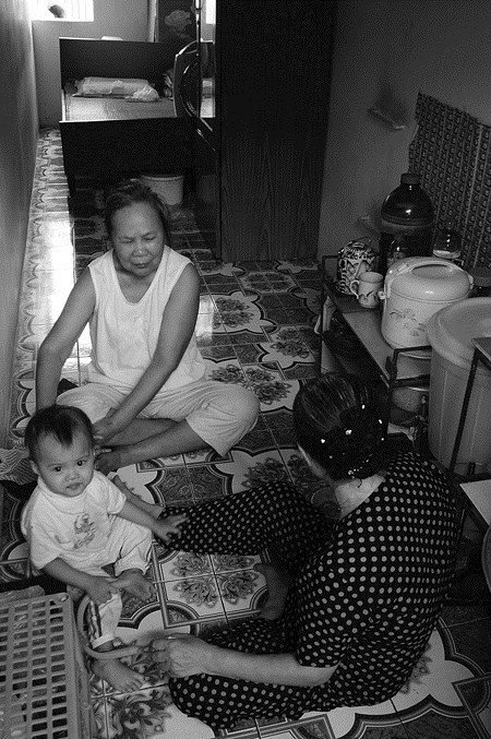 | Gia đình bà Châm ở tầng 2 nhà A6 có 5 người nhưng chỉ có diện tích mặt tiền 1,5 m x 5 m để sử dụng. |