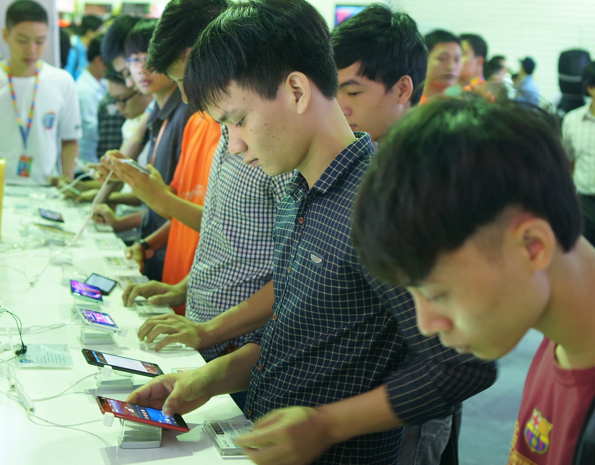 | Nơi trưng bày các sản phẩm dòng Xperia thu hút nhiều khách tham quan nhất, chủ yếu là những người dùng trẻ tuổi. |