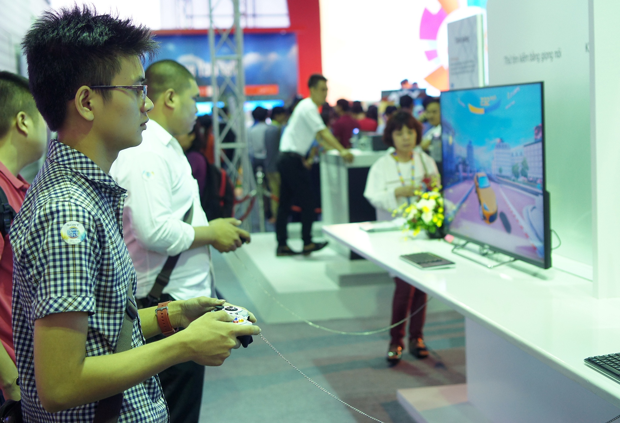 | Thử chơi game với tay cầm gắn ngoài trên TV Bravia. |