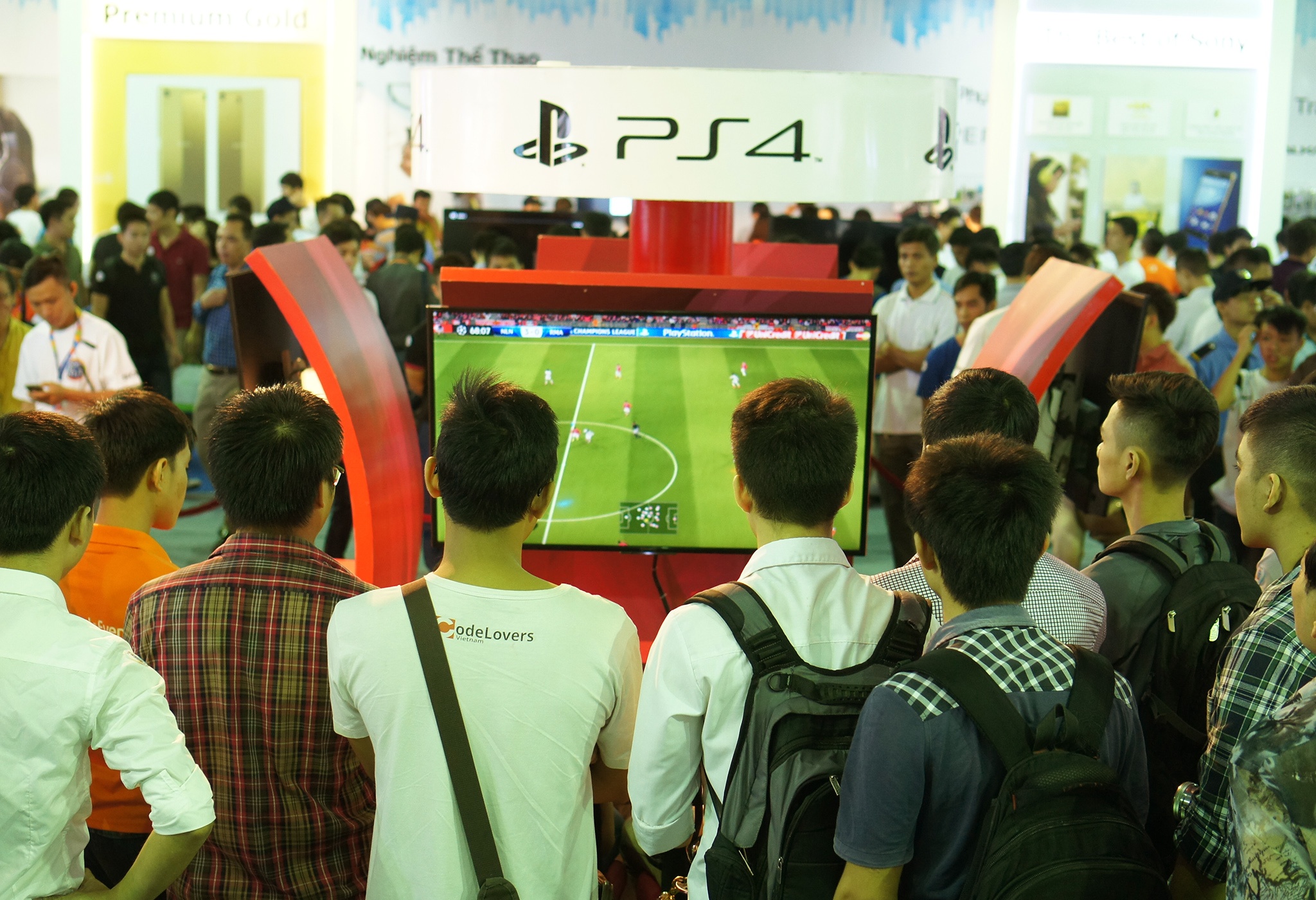 | Màn đọ sức với trò chơi PES 2015 trên PS4. Phần thưởng cho người vô địch giải đấu này (trong khuôn khổ sự kiện) chính là một bộ đầu chơi game PS4. |