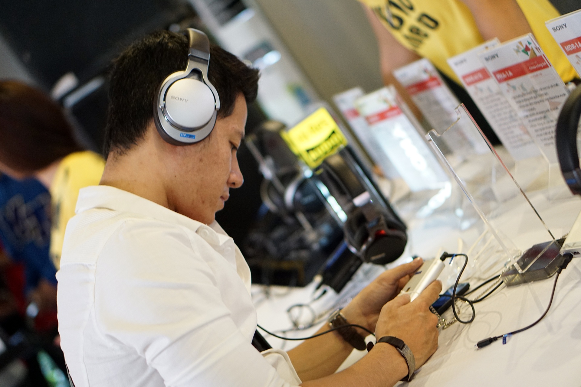 | Phần lớn các thiết bị có mặt tại sự kiện này là tai nghe, máy nghe nhạc Walkman và các loại ampli (tăng âm) nhỏ gọn. |