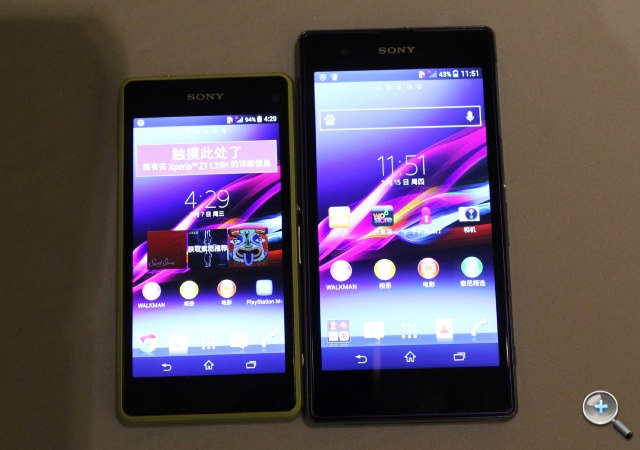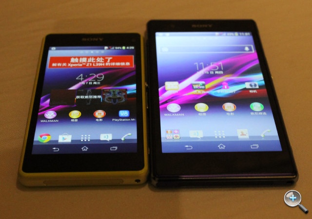| Model này bên cạnh chiếc Xperia T2 màn hình rộng 6 inch. |