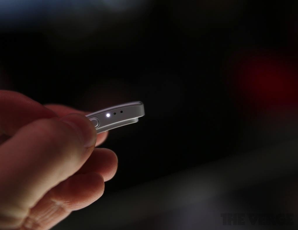 | Nó có thể được đính kèm với vòng đeo tay SmartBand trở thành một "Life Bookmarker" dành cho người dùng. Ảnh The Verge. |