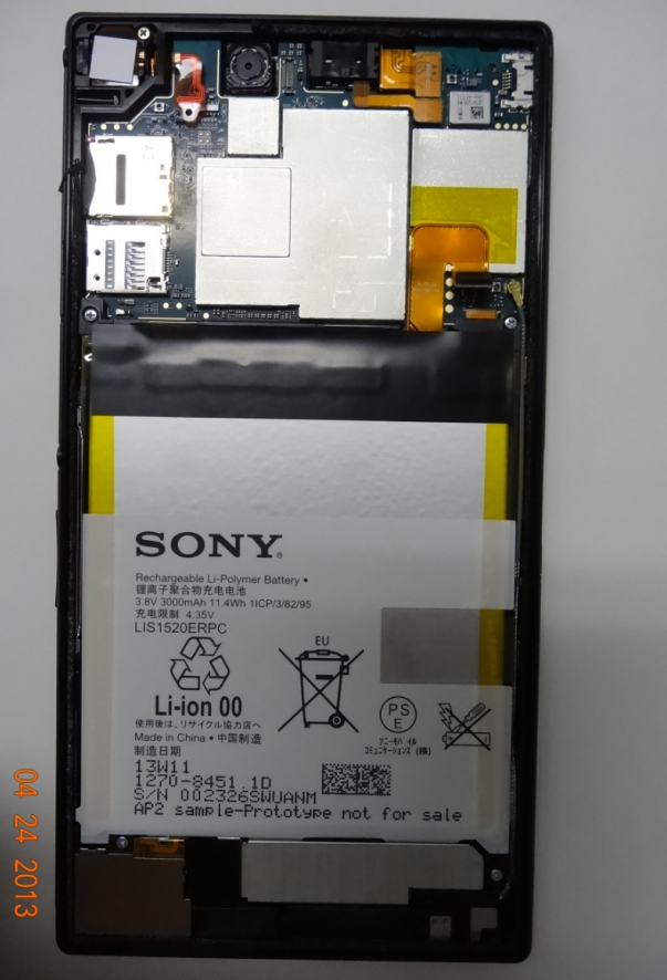 | "Nội thất" bên trong Z Ultra Wi-Fi. Mốc thời gian (mang tính tham khảo) trên ảnh là 24/4/2013. |