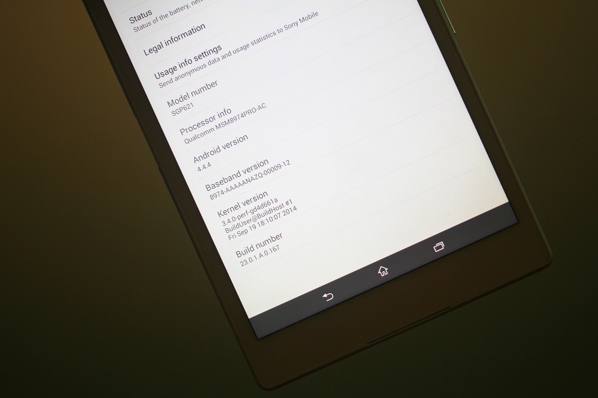| Z3 Tablet Compact chạy hệ điều hành Android 4.4.4. Thiết bị sử dụng vi xử lý Snapdragon 801, tốc độ 2,5 GHz, RAM 3 GB, bộ nhớ trong 16 GB, pin 4.500 mAh. |