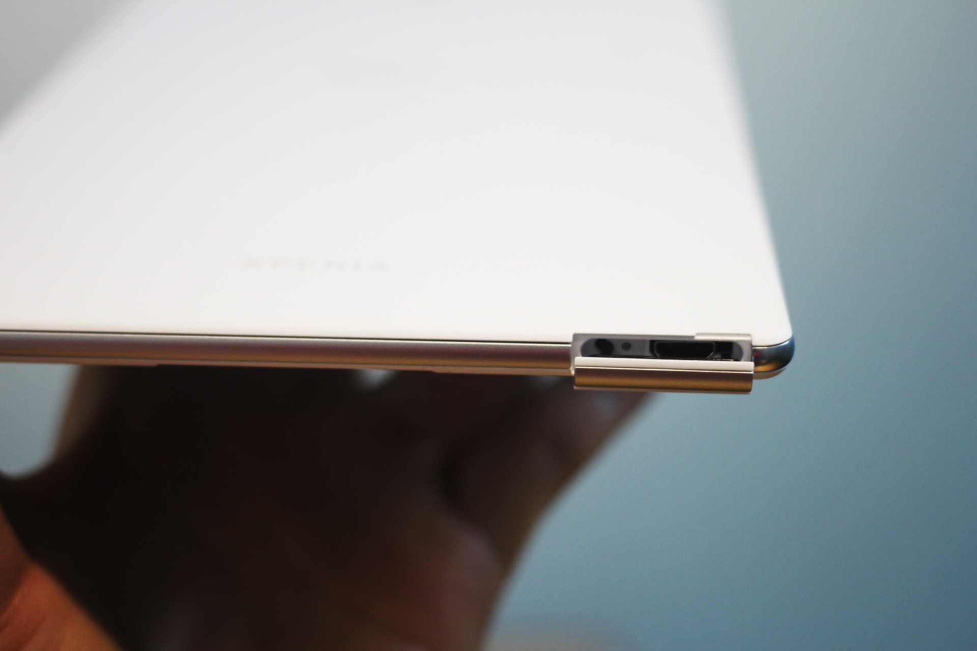 | Phía dưới là cổng microUSB. Z3 Tablet Compact cũng hỗ trợ công nghệ chống nước, bụi IP 65/68. |