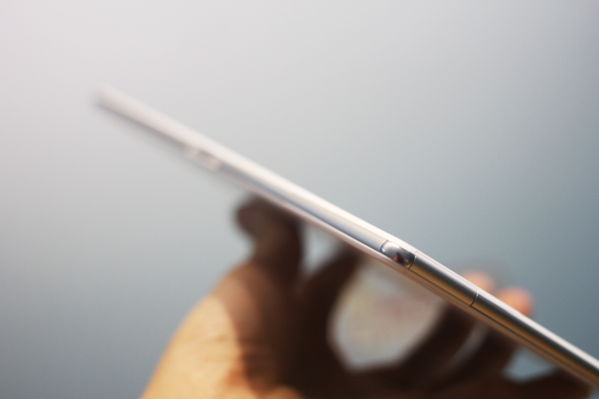 | Thiết bị sở hữu độ mỏng ấn tượng chỉ với 6,4 mm. Mặc dù vậy, máy trông vẫn rất chắc chắn với viền bằng kim loại. |
