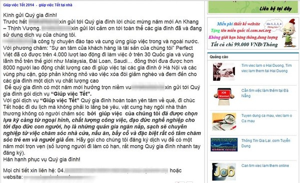 | Quảng cáo dịch vụ giúp việc Tết của một công ty môi giới. |