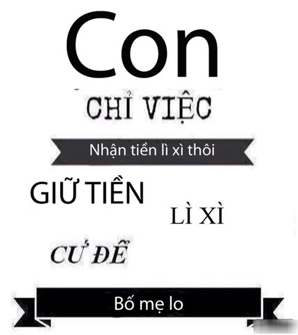| Đối đáp khôi hài giữa bố mẹ và con cái về tiền mừng tuổi đầu năm theo mô tiếp "chỉ cần". |