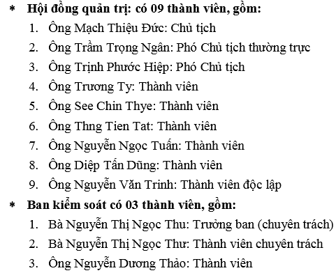 Theo đó, HĐQT của Phương Nam hiện có 9 thành viên và BKS có 3 thành viên, cụ thể như sau: