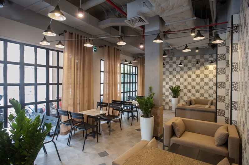 | Gạch lát được thiết kế thủ công, các chùm đèn và lọ được sơn tay là điểm nhấn xuyên suốt kiến trúc của tiệm. |