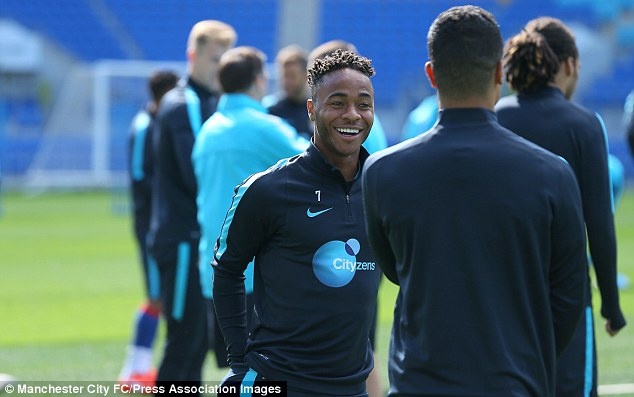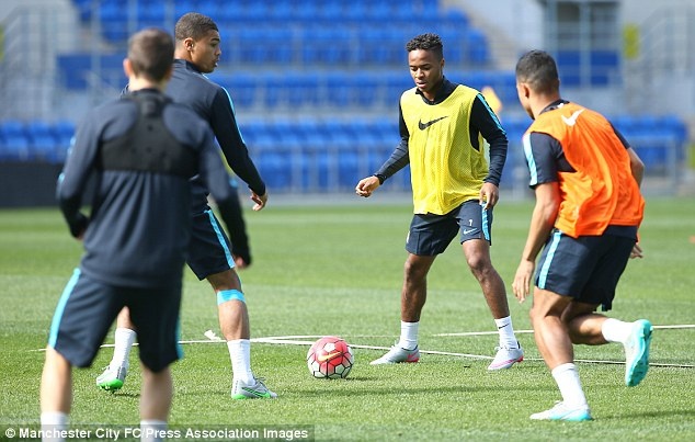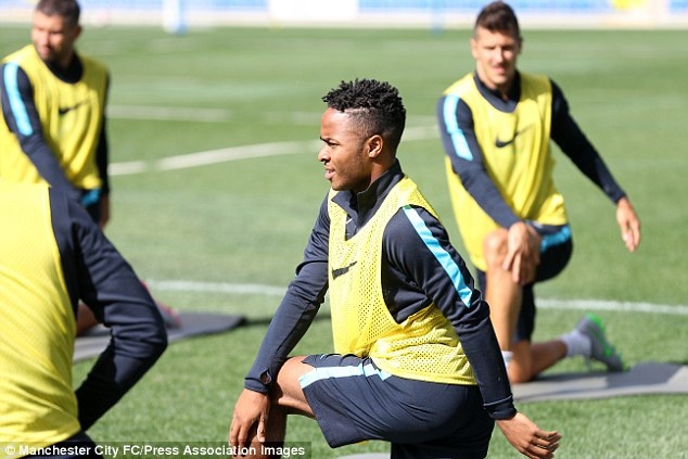 Raheem Sterling có tinh thần thoải mái trong buổi tập cùng đồng đội mới ở Man City. Anh là tân binh đáng chú ý của CLB chủ sân Etihad khi được chiêu mộ từ Liverpool với mức phí 49 triệu bảng.