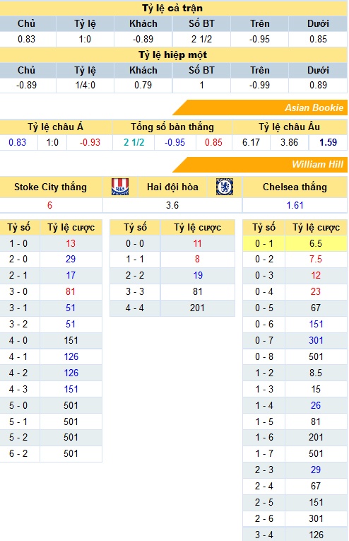 Thứ 3, trong những lần đối đầu giữa hai đội kể từ năm 1975 tại giải bóng đá cao nhất nước Anh, Stoke chưa một lần đánh bại Chelsea. Trong 12 lần đụng độ gần nhất ở các giải đấu, Chelsea giành chiến thắng tới 10 trận. Sở hữu đội hình có chất lượng vượt trội và đang có phong độ tốt, Chelsea hướng tới một chiến thắng nữa trước Stoke dù phải thi đấu trên sân Britannia.