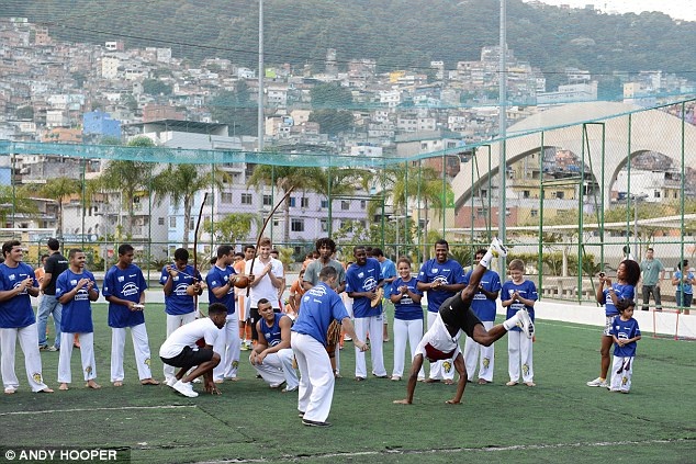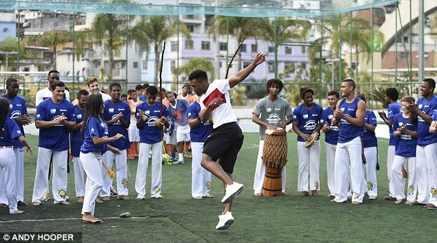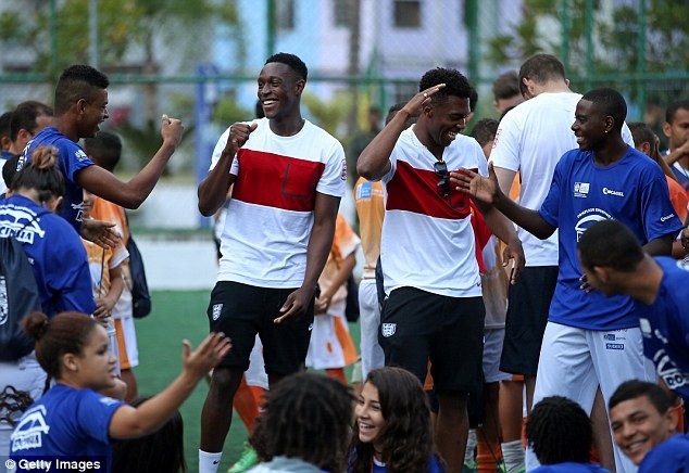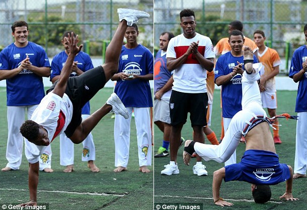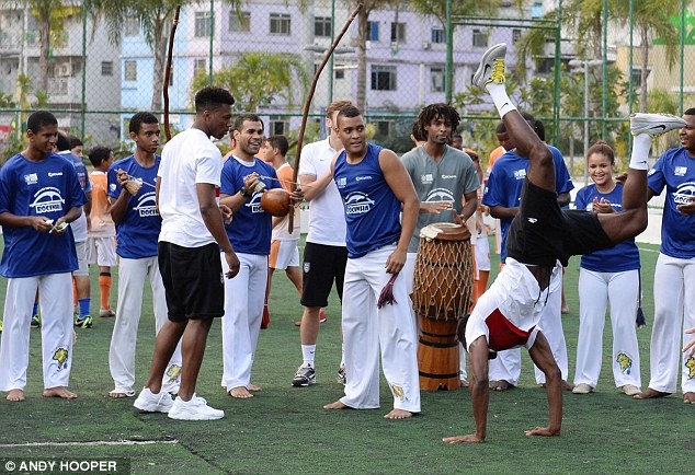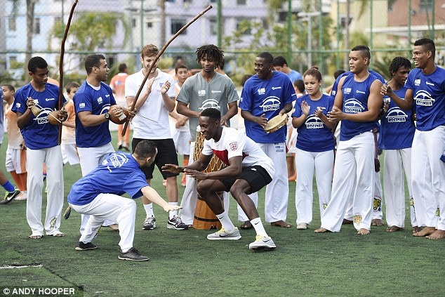 | Welbeck chịu khó học điệu nhảy của Brazil trong buổi giao lưu. |