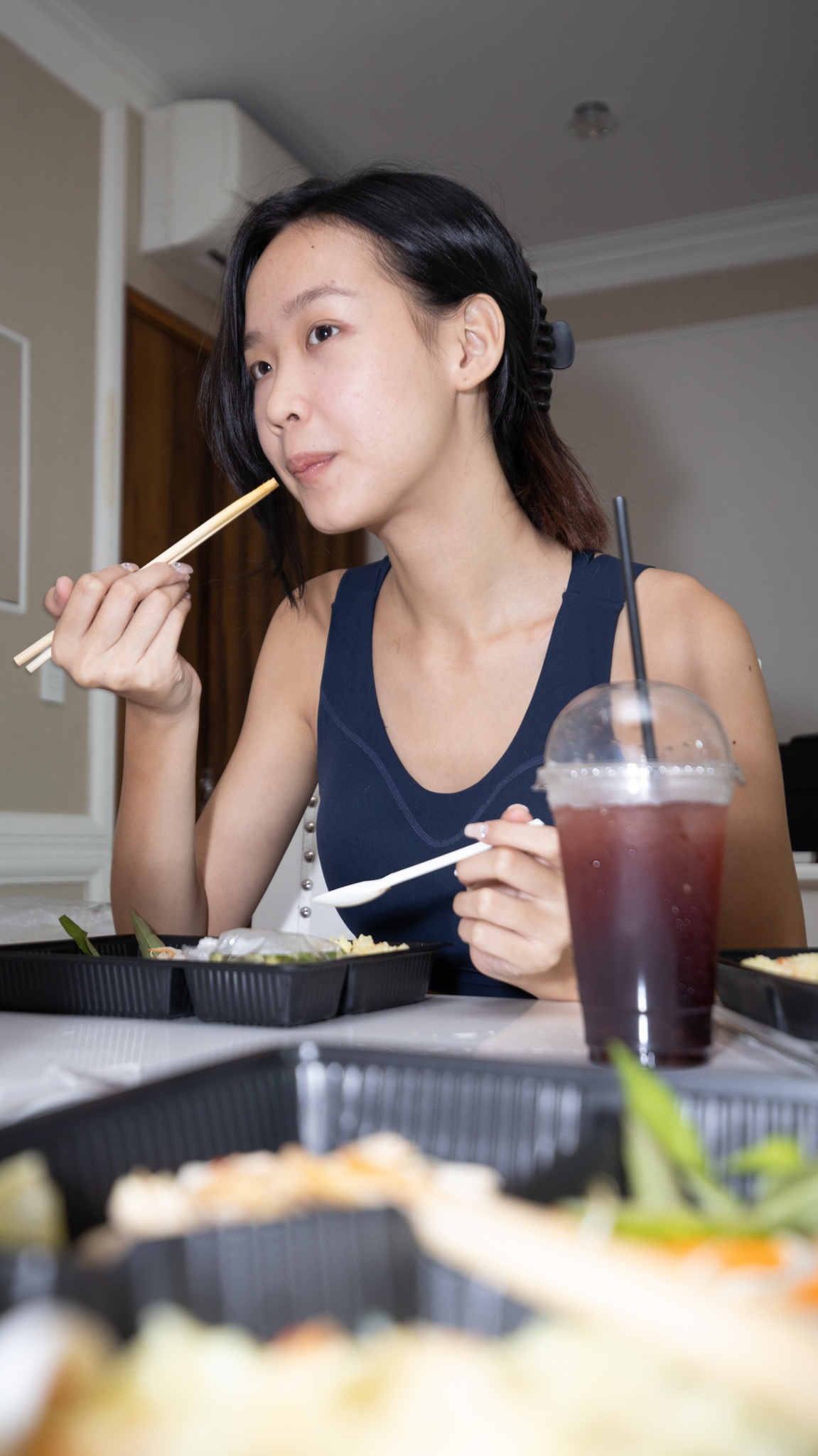| Chút thời gian hiếm hoi được nghỉ ngơi trong ngày, tôi vừa nhấm nháp khô gà, vừa tranh thủ gọi điện cho mẹ. Sau khi trở thành á hậu đến giờ, tôi vẫn chưa được về thăm gia đình. Mỗi ngày, mẹ đều lo lắng, gọi hỏi việc ăn uống, sinh hoạt của tôi ở TP.HCM. |