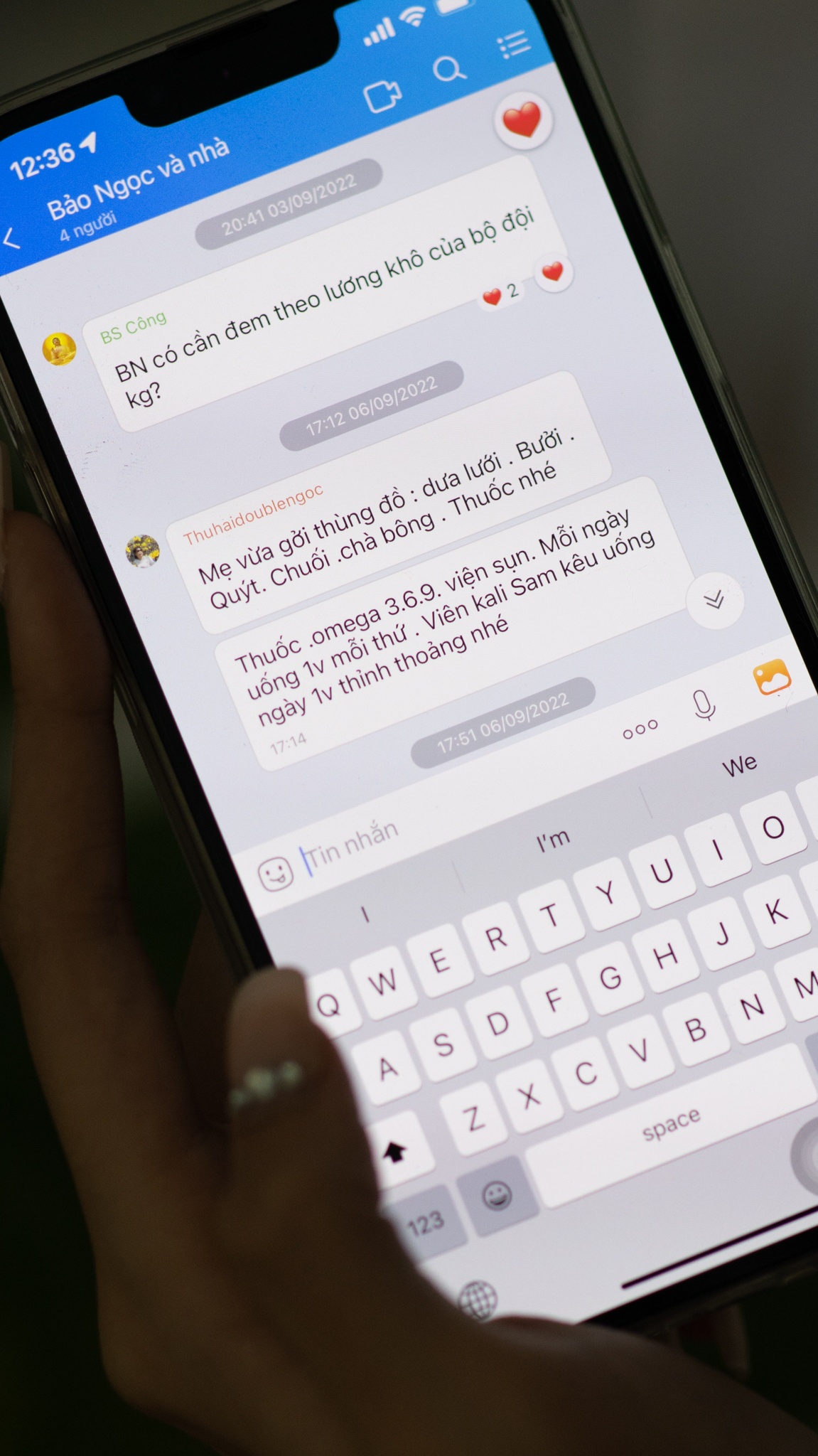 | Gia đình tôi có một nhóm chung trên Zalo đặt tên là “Bảo Ngọc và nhà”. Những tin nhắn phần lớn đến từ ba mẹ tôi với nội dung xoay quanh con gái. Mỗi tuần, mẹ đều gửi đồ ăn, thuốc men lên TP.HCM để tiếp sức cho tôi. Ba còn nhét thêm ít gói lương khô trong thùng đồ vì sợ con gái đói. |
