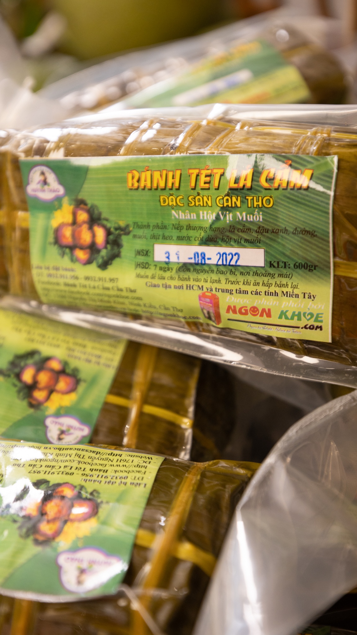 | Sự kiện trao sash Miss Intercontinental hôm ấy ngập tràn những đòn bánh tét lá cẩm - đặc sản của quê hương tôi. Ba mẹ đã tự đặt mua rồi thuê xe tải chở 300 bánh tét cùng nhiều quả bưởi da xanh để gửi tặng bạn bè, khách mời tại chương trình. |