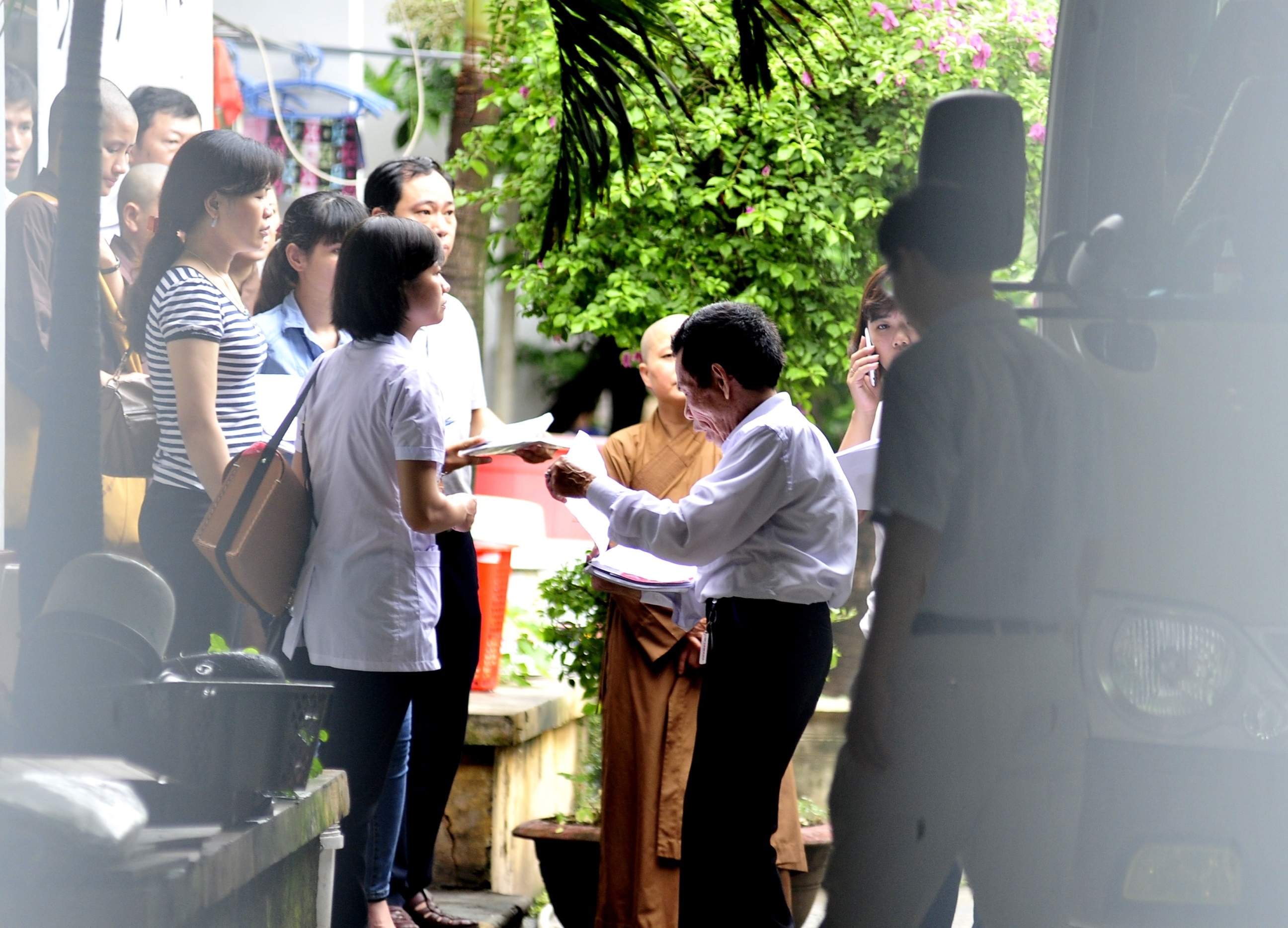 | Chứng kiến cảnh người già cơ nhỡ và các bé chuyển đi, nhiều người đứng trong khuôn viên chùa Bồ Đề không giấu nổi xúc động. |